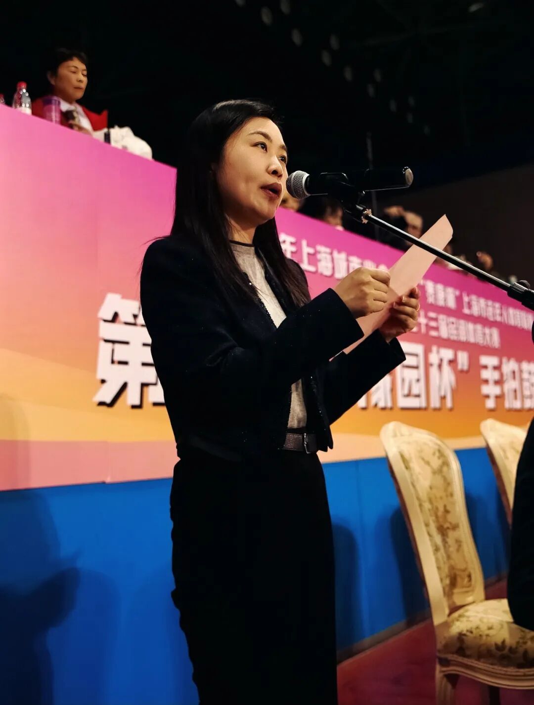 开幕式上,黄浦区豫园街道办事处副主任刘晶晶发表了热情洋溢的欢迎辞。她代表主办方向全体参赛队员、裁判员及现场来宾表示诚挚欢迎,并强调手拍鼓作为一项深受中老年人喜爱的健身项目,不仅丰富了市民的精神文化生活,还展现了新时代老年人积极向上的精神风貌。她鼓励所有参赛队伍赛出风格、赛出水平,充分享受运动带来的快乐与健康。随后,上海市老年人体育协会常务副会长袁辽新宣布比赛正式开始。