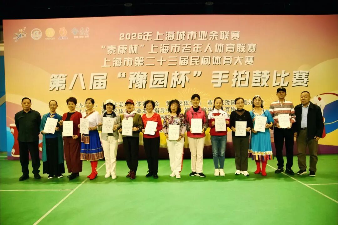 10月23日下午,卢湾体育馆内鼓声阵阵、掌声不断,由上海市老年人体育协会、黄浦区体育局、黄浦区豫园街道办事处等单位联合主办的第八届“豫园杯”手拍鼓比赛在此隆重举行。来自全市11个区的20支社区手拍鼓队齐聚一堂,以整齐的节奏、优美的动作,共同呈现出一场精彩纷呈的民间体育盛宴。比赛在庄严而热烈的气氛中拉开帷幕。