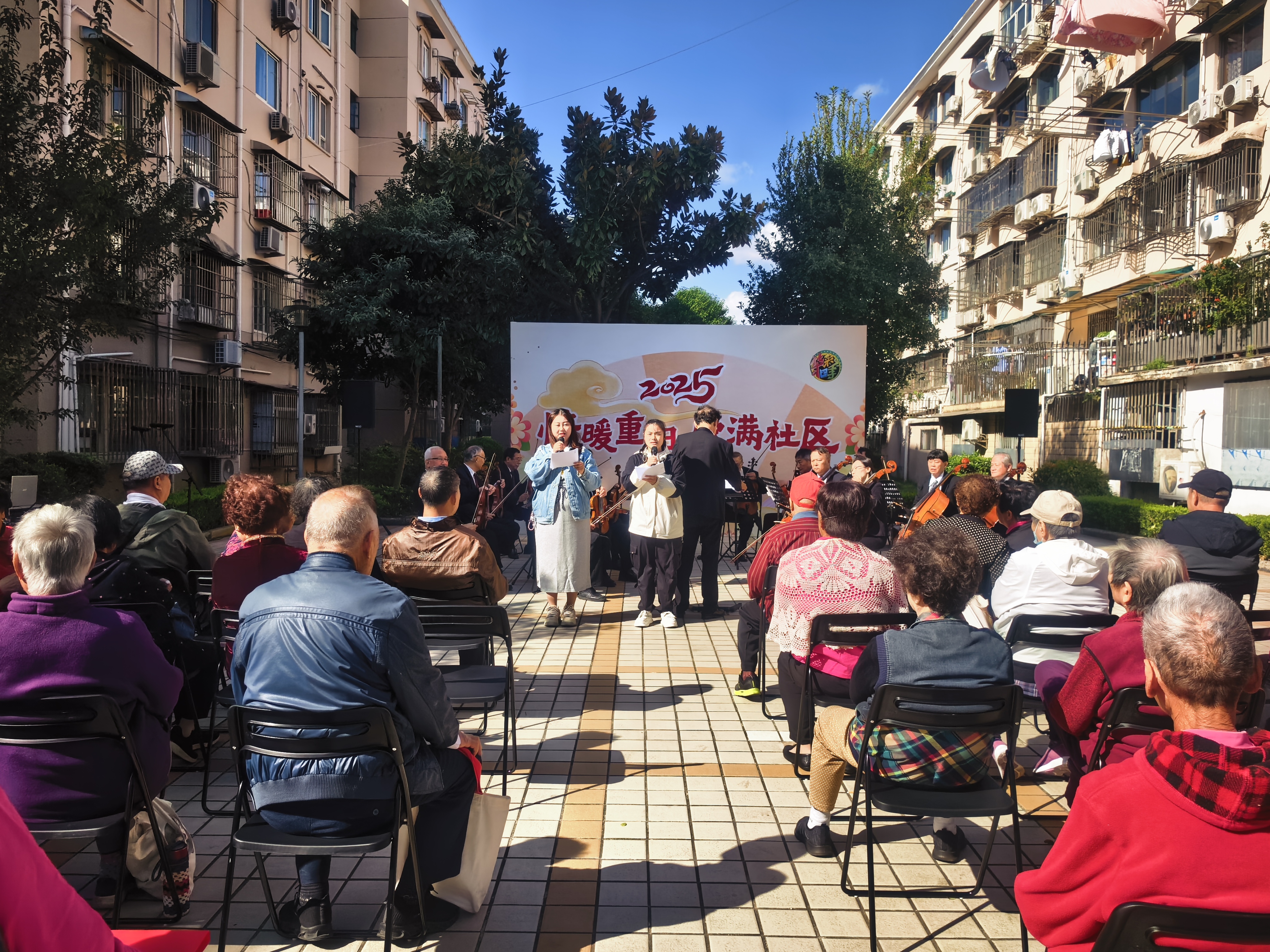 10月24日上午,彭浦新村街道临汾路1244弄居民区开展了“情满重阳 爱满社区”迎重阳节文艺演出,居民们早早地就在小广场等候着精彩的节目。