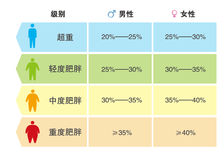 体脂率即身体脂肪占总体重的百分比,能精准反映脂肪堆积程度。成年男性体脂率≥25%,成年女性体脂率≥30%,判定为肥胖。