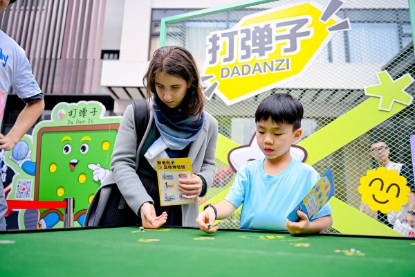 活动现场亮点纷呈,开场由“九子文化小传承人”上海市黄浦区瞿溪路小学的同学们带来的《九子之歌》童声合唱拉开了帷幕。通过音乐的感染力,巧妙联结弄堂记忆与全民健身热潮,让九子运动精神以“可聆听的烟火气”浸润城市。承载着2025年城市记忆的“九仔家族”IP人偶以及充满未来感的“九子家族元气宇宙”互动装置出现在活动现场。吸引更多居民与人偶、装置互动打卡,深入了解九子运动,解锁运动乐趣,扩大“九子文化”在社交圈的传播。参与者通过体验任意九子运动项目即可获得印章,集满8个及以上可获得精美小礼品一份。