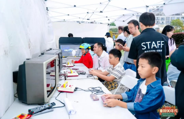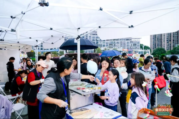 摆满老式自行车、电视机、搪瓷杯的怀旧馆,成为最受欢迎的打卡点;街霸游戏机前的对决,则重现了当年的热血场面。舌尖上的记忆同样被唤醒,冰糖葫芦、老冰棍的摊位前始终人气满满。