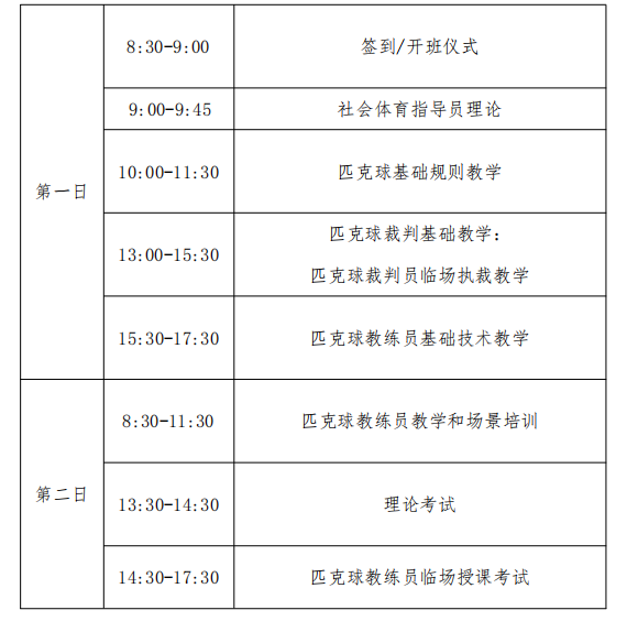 (参加培训的学员需自带专业运动服装和匹克球拍)