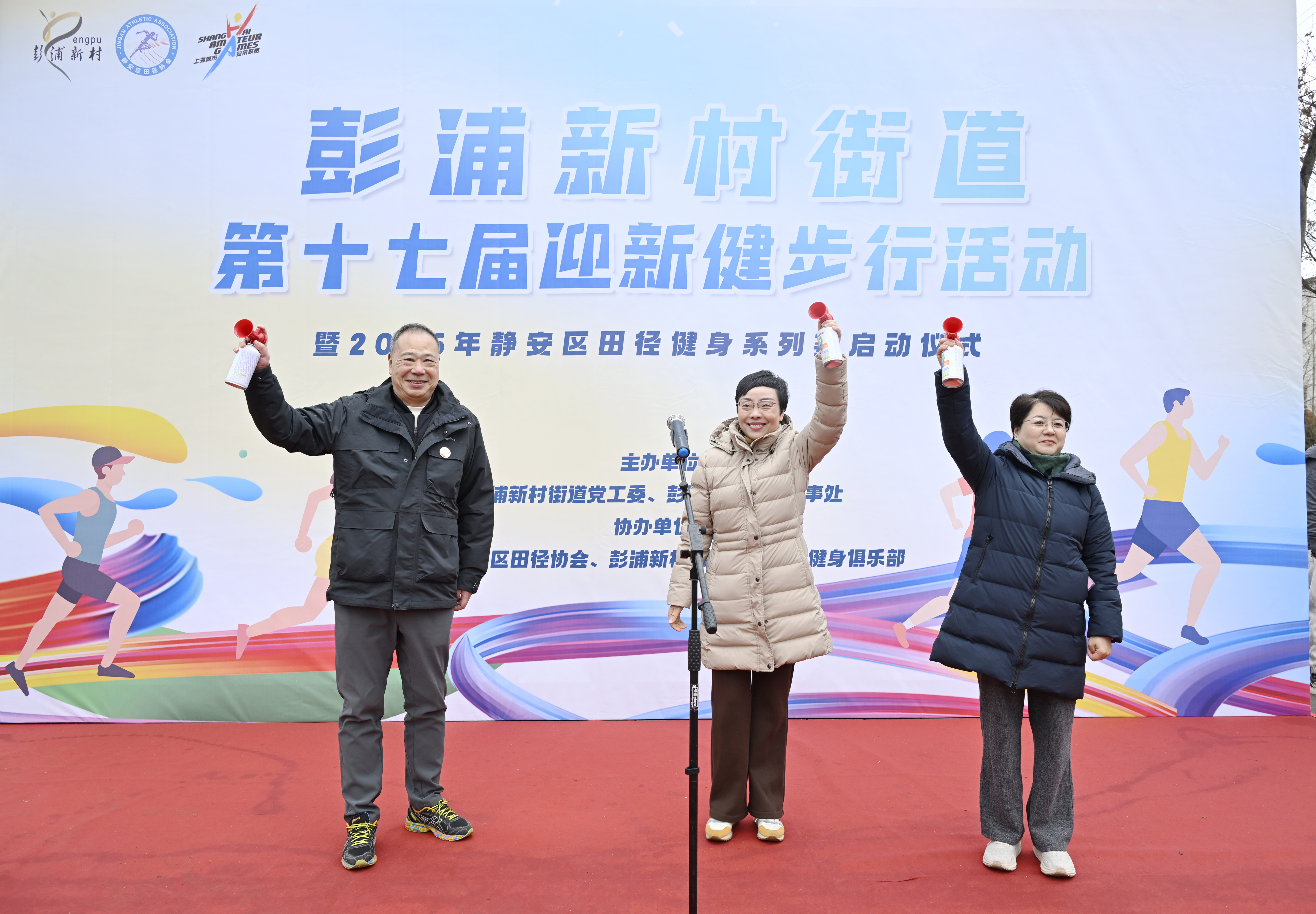 启动仪式上,街道党工委书记张丽珍致新年贺词,向长期关心支持街道发展的居民群众和奋战在基层一线的同志们送上新年祝福。随后,在区体育局和田径协会的共同见证下,2026年静安区田径健身系列赛正式启动,静安区体育局党组书记俞宙冬宣布活动开始并与街道党工委书记张丽珍、静安区田径协会副会长崔傲雪共同鸣响发令枪。迎新健步行作为系列赛首站活动,吹响了全年全民健身赛事的“第一声号角”。