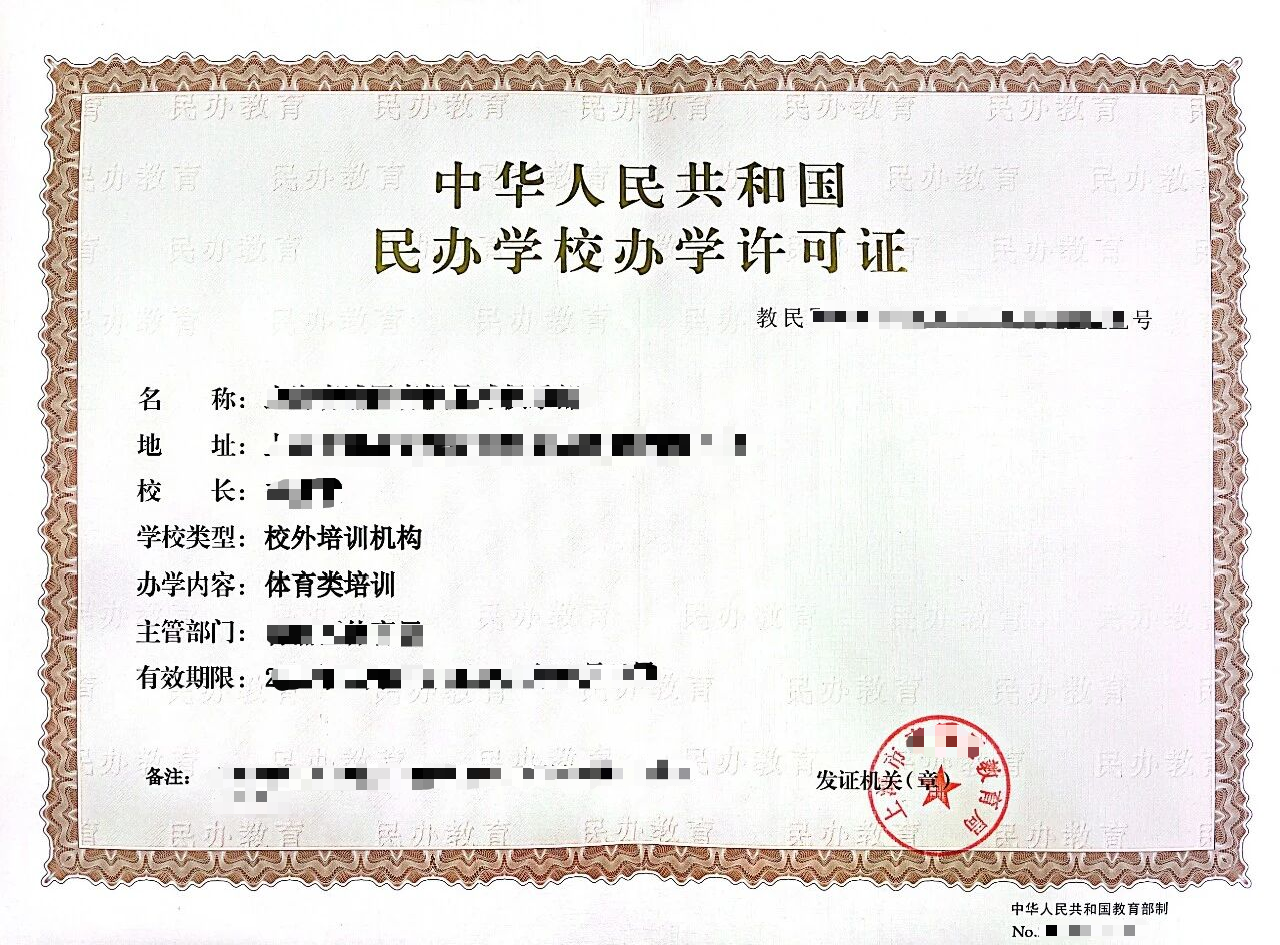 正规的体育类校外培训机构应同时取得“办学许可证”和“营业执照”(或“民办非企业单位登记证书”),并将这两份证照主动公示在显著位置。家长在选择培训机构前,请仔细查看营业执照经营范围是否与培训课程相匹配。选择合法的正规机构,保护自身合法权益!