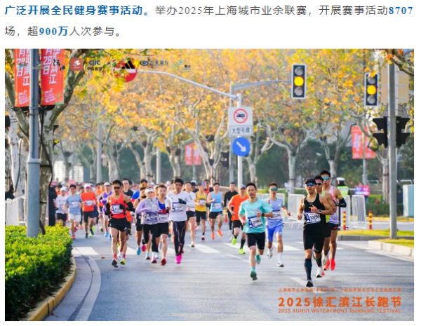 加强体育文化建设与交流合作。“上海体育”政务新媒体发布内容每月均入选上海政务新媒体热门阅读传播影响力十佳。打造长三角体育文化精品主题展、长三角体育榜单发布等品牌活动,“体荟魔都”体育文化品牌入选 2025年全国体育文化建设案例。