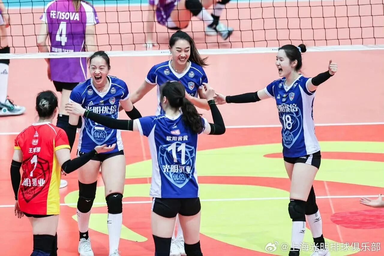 上海光明男排、光明优倍女排分获超级联赛冠亚军。
