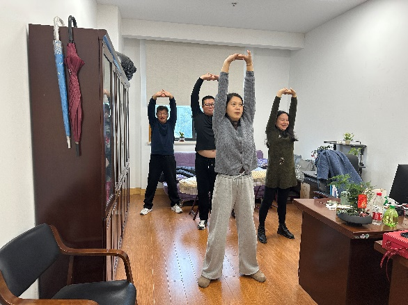 年终岁末,文体中心体育组的几位工作人员正加紧排练,这不是竞技项目的激烈角逐,而是一套刚柔并济的八段锦,作为献给单位年终联欢会的节目。
